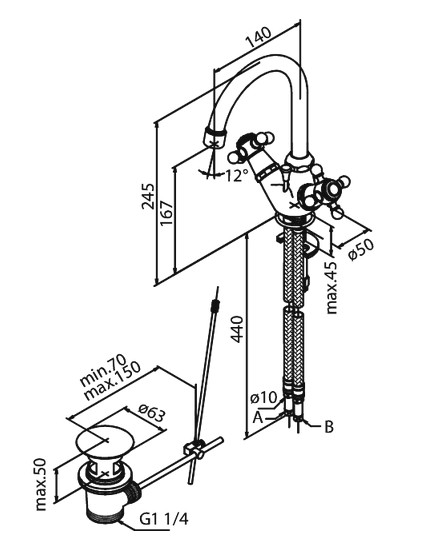 Damixa Tradition håndvaskbatteri med svingtud. Med bundventil, keramisk regulering.