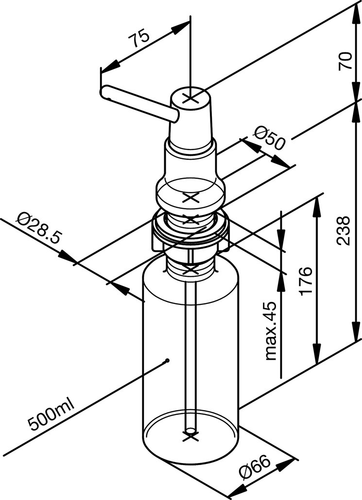 Damixa Sæbedispenser - 75 mm dyse - Flad knapDamixa Sæbedispenser - 75 mm dyse - Flad knap