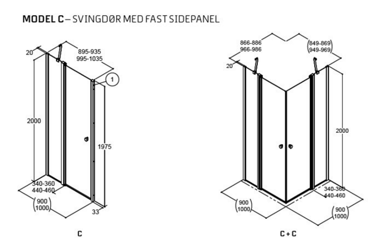 Dansani Match C 90 nichedør m/fast væg - Klar glas/matkromDansani Match C 90 nichedør m/fast væg - Klar glas/matkromDansani Match C 90 nichedør m/fast væg - Klar glas/matkrom
