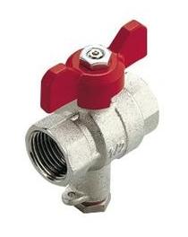 Kuglehane med fuldt gennemløb, beregnet for bl.a. varme,- og køleinstallationer. Med stålgreb i rød farve.