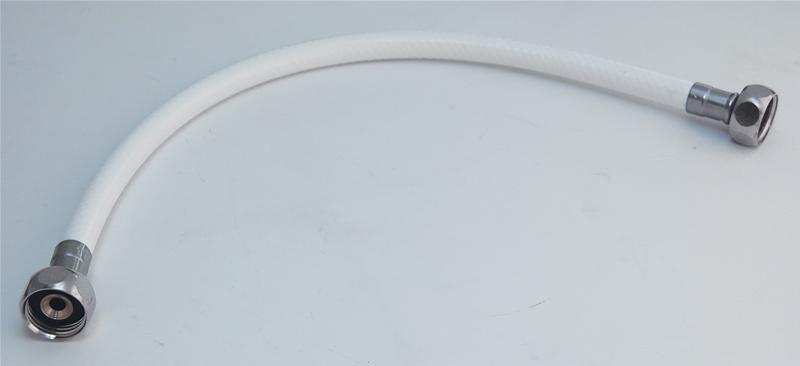 Tilslutningsslange ½ x ½ på 500 mm. Tilslutningsslange til toilet inkl. 2 pakninger. Specifikationer: Længde: 500 mm Farve: Hvid Dimension: ½ x ½