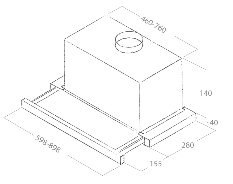 Eico Elite 14 LUX Grix 90 X emhætte til vægmontering m/udtræk - Rustfrit stål Udtræksemhætte med intern motor. Specifikationer: