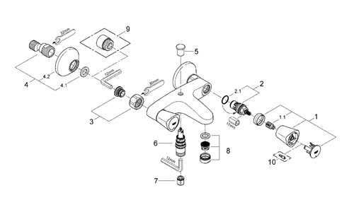 Grohe Costa S badekararmatur m/brus Specifikationer: