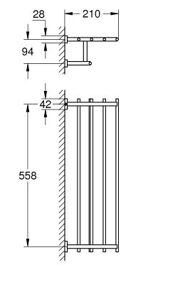 Grohe Essentials Cube håndklædestang m. hylde - Krom Smuk og praktisk håndklædeholder med dobbelt funktion. Her kan du nemlig både hænge flere håndklæder, men du kan også have håndklæder liggende foldet ovenpå og bruge den som hylde. Grohe Essentials Cube håndklædeholder i Krom er grafisk og enkel i sin udformning - de lige linjer og skarpe kanter er med til at skabe visuel ro. Brug mere badeværelsestilbehør fra samme serie og oplev hurtigt en rød tråd i badeværelsesindretningen. Håndklædeholderen er belagt med Grohe Long-Life Shine-krombelægning, hvilket betyder at den sagtens kan tåle både skiftende temperaturer på badeværelset og fugten fra håndklæder. Overfladen er tilmed ridsefast, så du kan være sikker på, at din nye Grohe Essentials Cube håndklædestang holder i mange år fremover. Specifikationer: