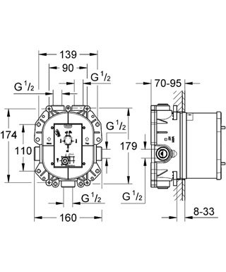 Grohe Rapido T indbygningsdel afgang ned 1/2 - kun anvendelig med separat spærreventil