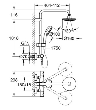 Grohe New Tempesta Cosmopolitan 160 brusesystem m/ termostat