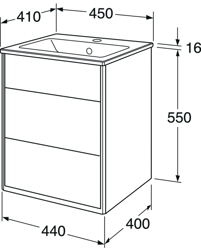 Graphic har lidt slankere mål end de fleste andre badeværelsesmøbler. Designet er baseret på grafiske former og mål, der gentager sig.