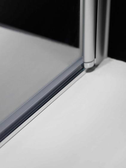 Hvis badeværelsegulvet hælder, kan vi tilbyde en gulvliste i aluminium, som forhindrer vandet i at løbe ud.
