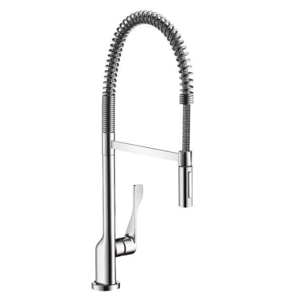 Det ergonomiske greb er også let at betjene med snavsede eller sæbevåde hænder. Et fleksibelt svingningsområde skaber frirum ved vasken, som du kan gøre endnu større med varianten med udtræksbruser. På Semi-Pro versionen gør en fjeder af rustfrit stål tuden meget bevægelig.
