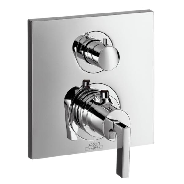 Hansgrohe Axor Citterio termostatbatteri med afspærring og omskifter. Med vingegreb. Kappesæt bestående af 2 greb og roset. Kombineres med Ibox Universal og lækagesikringer (se relaterede varer nedenfor).