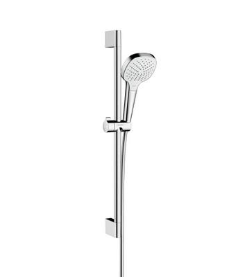 Med Croma Select E Vario brusersæt fra Hansgrohe, kan du ikke blive andet end fornøjet. Håndbruseren i det smarte soft-cube design tilbyder 3 forskellige stråletyper, der vælges enkelt og intuitivt med den praktiske Select-knap. Dermed har du mulighed for at få den stråletype, der passer til netop dig og dine behov. På den 65 cm lange bruserstang har du mulighed for at indstille bruserhøjden helt perfekt.