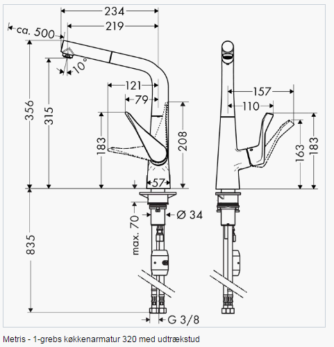Hansgrohe Metris køkkenarmatur m/udtræk - Krom