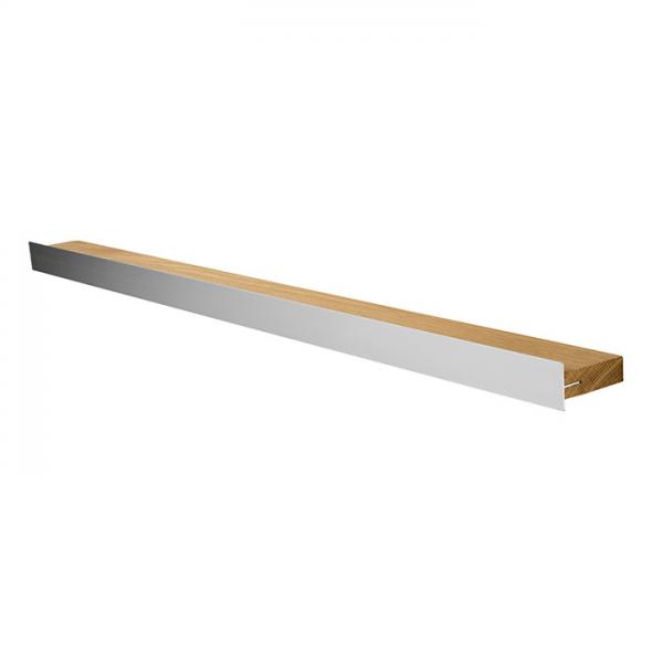 Lang gallerihylde fra Hoigaard i en kombination af massivt træ og aluminium.