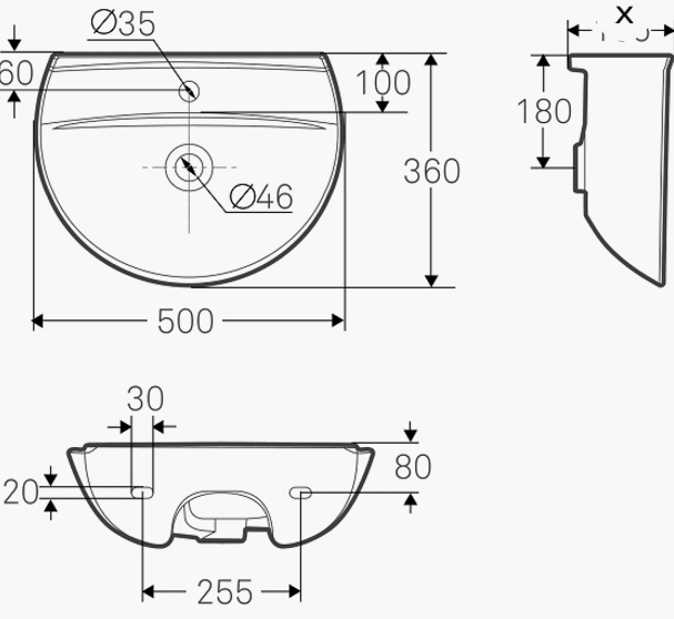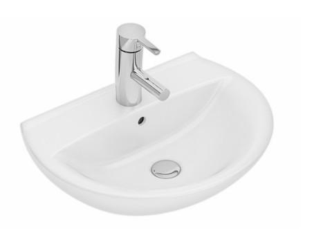 Ifö Spira 50 håndvask t/væg - 1 hanehul - Ifö Clean Håndvask med afsætningsplads på bagerste del af vasken. Fremstilles også uden overløbshul og hanehul, hvilket giver enklere rengøring. Monteres med bolte. Håndvasken er behandlet med Ifös rengøringsvenlige glasur Ifö Clean og godkendt i henhold til Nordic Quality. Design Knud Holscher. Specifikationer: