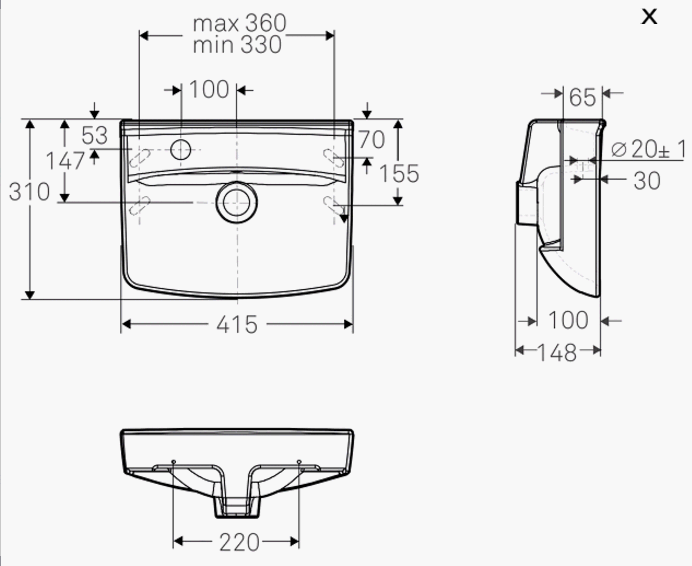 Ifö Spira Square 40 håndvask t/væg eller møbel - 1 hanehul venstre - Ifö Clean