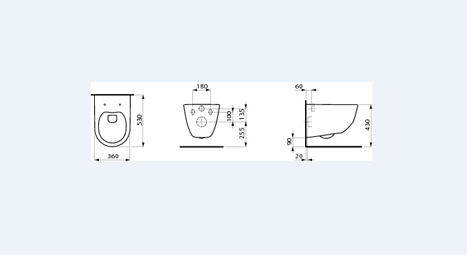 Man kan fint bruge dette væghængte toilet på en eksisterende indbygningscisterne. Man skal blot sikre, at boltafstanden (se måltegning) er den samme som på den skål der er monteret i forvejen. Trykknapperne, eller trykpladen, skal ikke skiftes, den følger indbygningscisternen. Skal du også have en ny indbygningscisterne, så kan du se relaterede varer eller på vores mange toiletpakker.  |