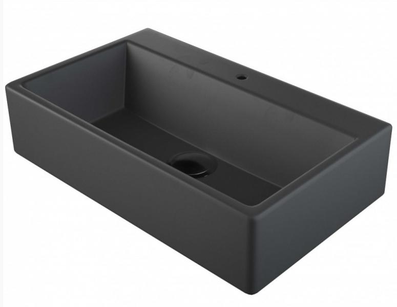 Outletvare til nedsat pris - Kun 1 stk. tilbage til outletpris. Lavabo Boxo 1080 SLIM 50 håndvask t/væg eller bord - 1 hanehul - Mat sort Boxo 1080 SLIM porcelænsvask til placering på bord eller ophængning på væg. Det giver flere indretningsmuligheder. Specifikationer: