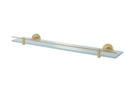 Kosmos glashylde i børstet messing finish tilbyder småopbevaring på badeværelset.