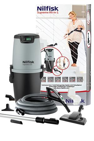 Ca. 40 m rør til fjerneste kontakt. 25 l spand - med eller uden pose. Til huse på ca. 150-250 m2.