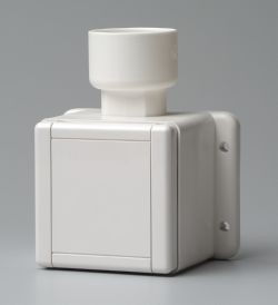 Rør føres synligt i boksen oppefra. Bruges f.eks. i garagen.