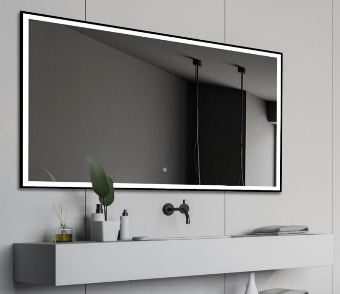Fie firkantet spejl m/sort ramme, integreret LED lys og touch - 80 cm