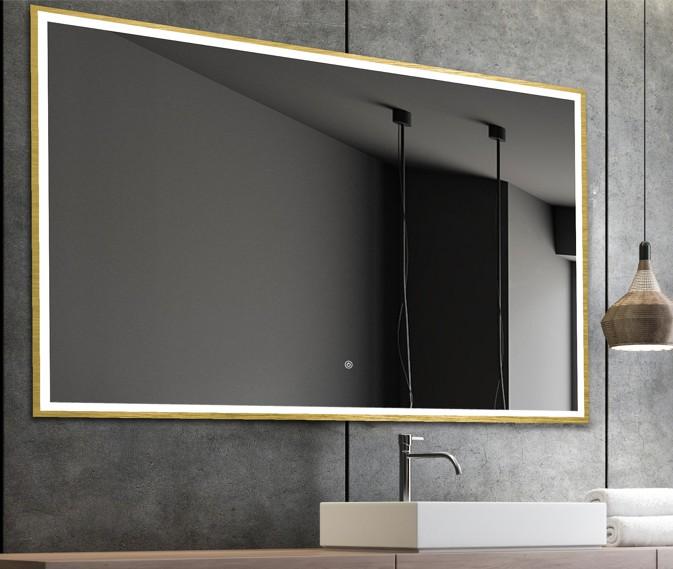 Tanja firkantet spejl m/messing ramme, integreret LED lys og touch - 100 cm