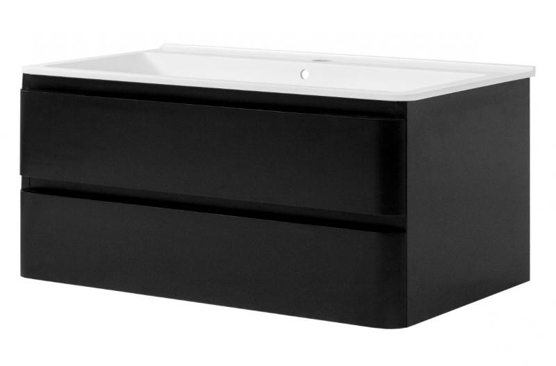 Stilrent badmøbel i moderne mat sort, med integreret greb samt afrundede kanter.