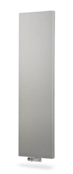 Kos V har en flad forside, der giver et nedskaleret indtryk af tidløs elegance. De afrundede, flade sidepaneler sikrer, at linjerne er rene fra alle sider. Ligesom andre lodrette indretningselementer skal designet ikke kun give en oplevelse af højde, det er også en kraftfuld varmekilde i rum, hvor vægfladen betyder meget. Komplet med beslag, sidepaneler, installationsclips, installationsmodel, udluftningsskrue, 3 blindpropper, skruer og plastpropper.