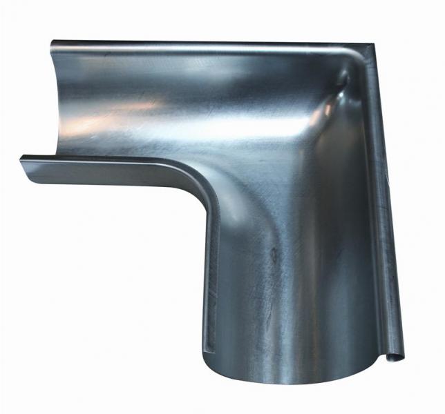 Varebeskrivelse Rheinzink udvendig gering 280mm. En gering bruges hvis man skal rundt om et 90 graders hjørne med sin tagrende.
