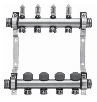 Roth gulvvarme fordelerrør med 3 kredse og med flowmåler.