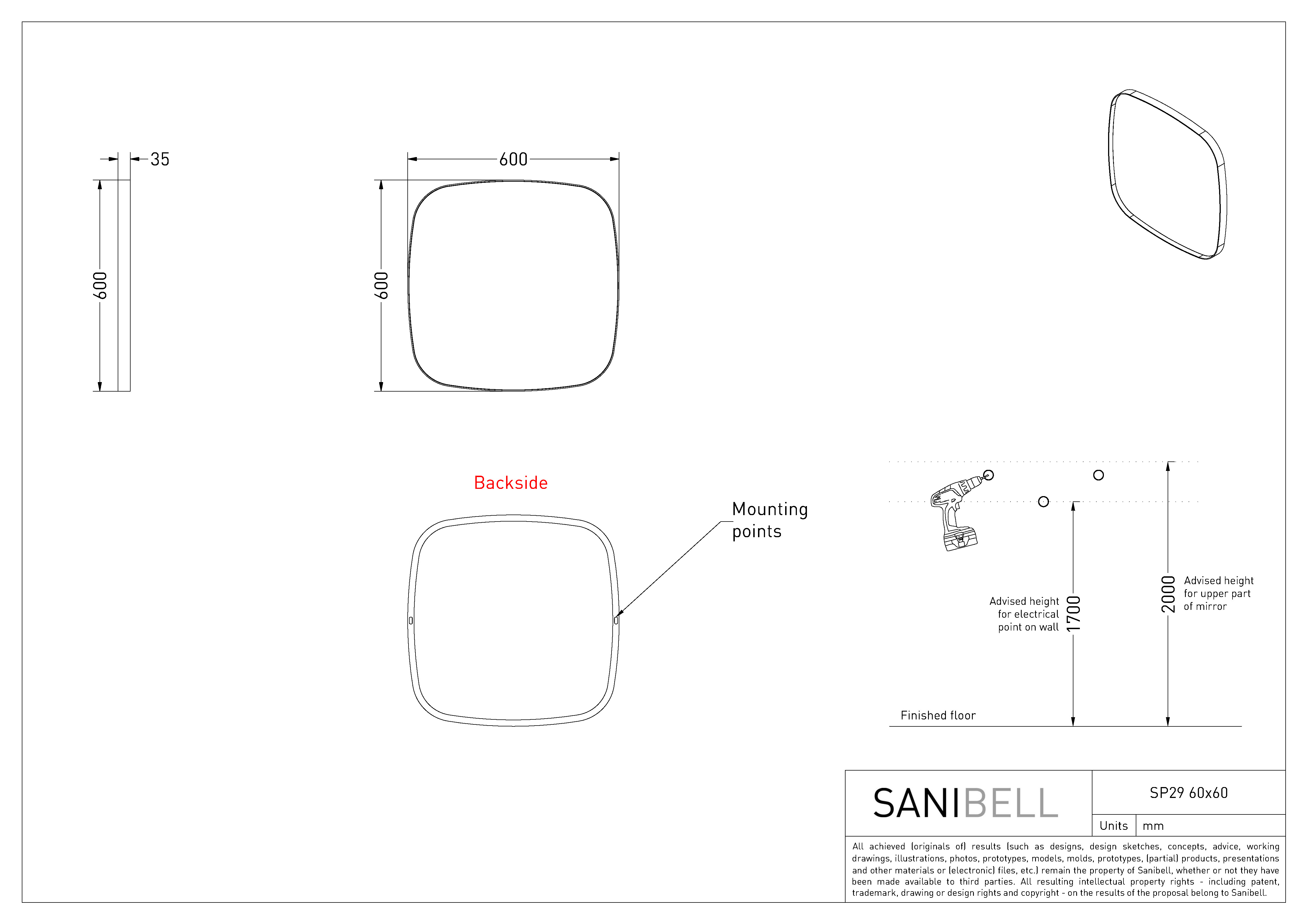 Sanibell Ink SP29 superellipse spejl m/ramme 60 x 60 cm - Børstet gunmetal Minimalistisk spejl med ramme, som forfra er helt slank, men fra siden træder frem fra spejlets profil. Formen er superellipse og dermed ikke helt rund, og ikke helt firkantet. Et spejl på badeværelset, i soveværelset eller i entréen er en alletiders måde at skabe liv og bryde de linjer der ellers ofte præger hjemmet. Kombiner eventuelt spejlet med elegante væglamper, som kan være med til at skabe atmosfære, godt arbejdslys og understrege indretningsstilen. Specifikationer: