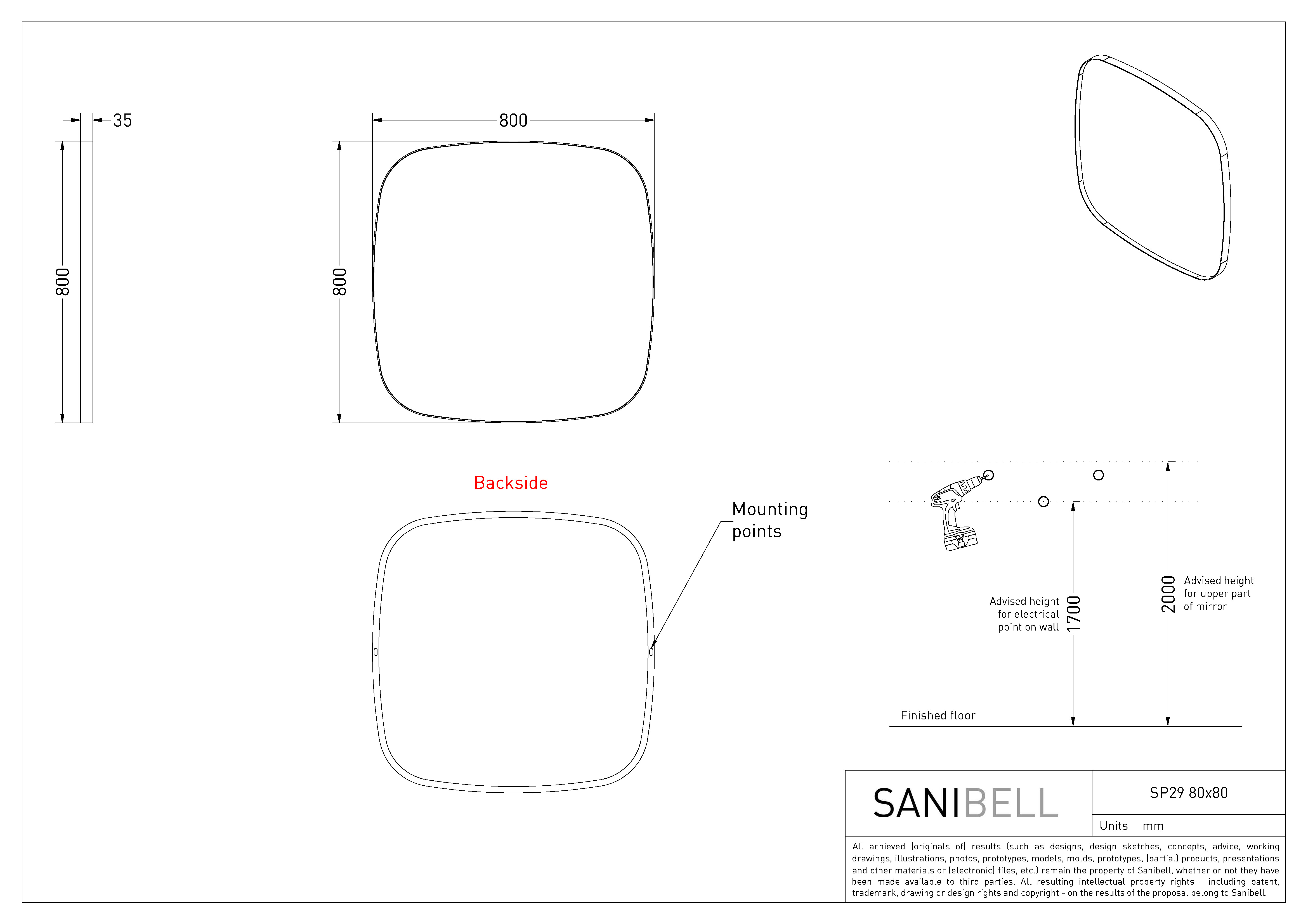Sanibell Ink SP29 superellipse spejl m/ramme 80 x 80 cm - Børstet rustfrit stål Minimalistisk spejl med ramme, som forfra er helt slank, men fra siden træder frem fra spejlets profil. Formen er superellipse og dermed ikke helt rund, og ikke helt firkantet. Et spejl på badeværelset, i soveværelset eller i entréen er en alletiders måde at skabe liv og bryde de linjer der ellers ofte præger hjemmet. Kombiner eventuelt spejlet med elegante væglamper, som kan være med til at skabe atmosfære, godt arbejdslys og understrege indretningsstilen. Specifikationer: