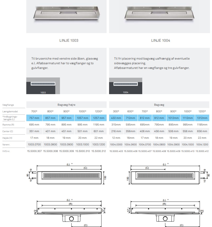Unidrain har ændret gulvafløbet fra et uskønt hul i gulvet til et designobjekt, der skaber nye muligheder i baderummet.Og samtidig har Unidrain løst problemerne med at lave vandtætte afløbsløsninger i byggeriets næststørste skadesområde, vådrum. OBS - For komplet afløb skal der også bruges et udløbshus, ramme, rist og evt. trævlesi, se relaterede varer Ramme og rist skal være samme længde som armaturet. Rammen skal have flisens højde + 2 mm så der er plads til fliseklæb. Udløbshus findes i flere størrelser og retninger, kontakt en fagmand hvis du er i tvivl. |