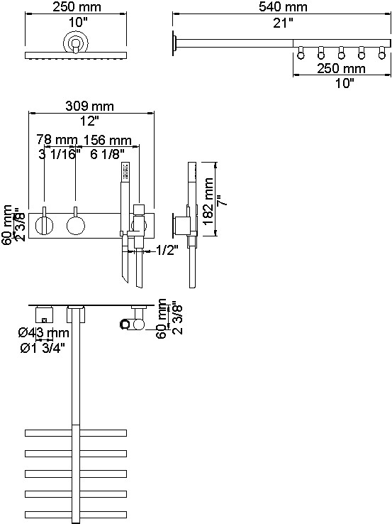 Vola Et-grebsblander inkl. hovedbruser og håndbruser - Krom