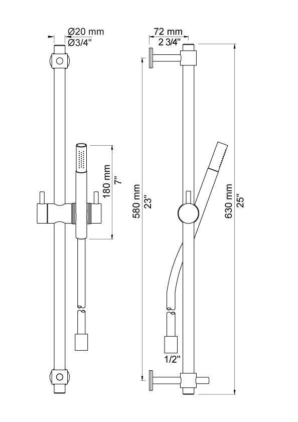 Vola T34 brusesæt. Bestående af brusestang, håndbruser og slange på 1,5 m.  |