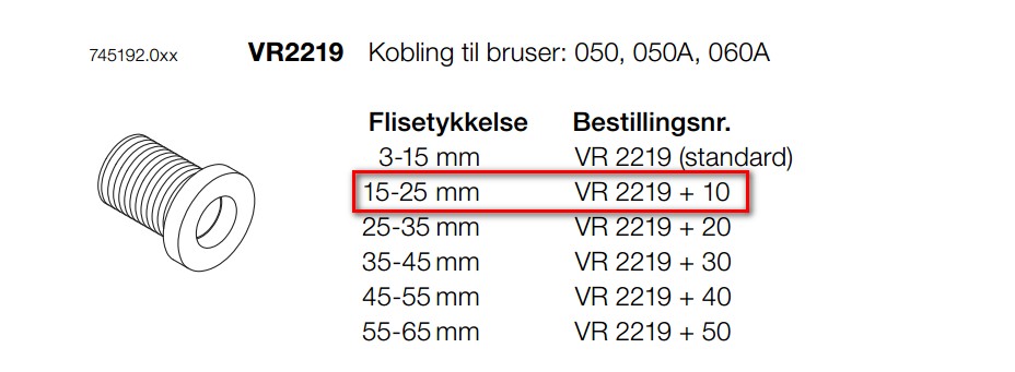 Vola Kobling for 050 Børstet krom 20