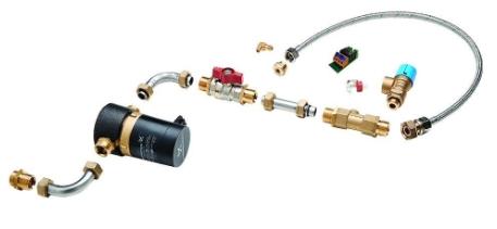 Wavin Calefa II Cirkulationssæt Anvendes med Wavin Calefa II fjernvarmeunits i tilfælde af, at varmtvandssystemet ikke imødekommer brugerens krav til komforten på det varme vand. Cirkulationssættet kan eftermonteres, hvis ventetiden på varmt vand ved tapstedet medfører gener eller uønsket vandspild. Sættet leveres med pumpe. Når sættet er installeret, kan styringen indstilles således, at cirkulationspumpen kun er i drift, når brugeren normalt er hjemme. Derved reduceres udgifter til pumpens strømforbrug markant. BEMÆRK: For at anvende cirkulationssættet skal varmtvandsinstallationen være forberedt med en cirkulationsledning til tapstedet.  |