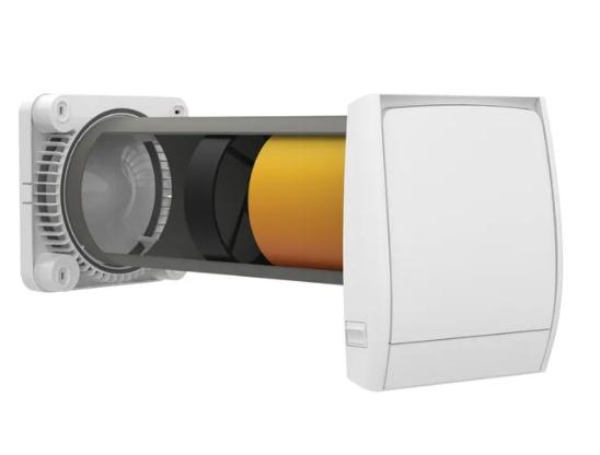 PP60 DHRU-01 er en væggennemført decentral ventilationsenhed med varmegenvinding, som består af 500mm ø160mm rør, som kan tilpasses til vægtykkelsen samt keramisk genvindingskerne, ventilator, støvfiltre, indvendig skærm med styring, skumringssensor og fugtsensor samt udvendig skærm i hvid plast. Der medfølger en fjernbetjening med vægbeslag.