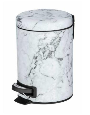 Den stilfulde pedalspand i marmor look udgør en attraktiv tilføjelse til badeværelset.